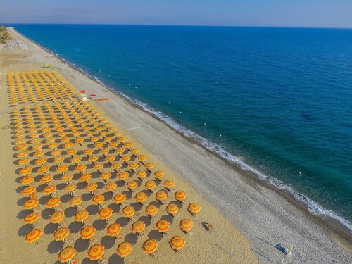 Частный пляж и зонтики