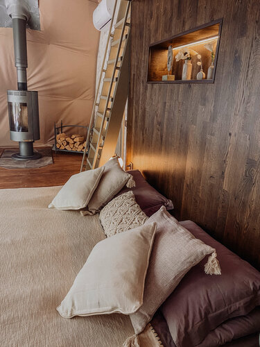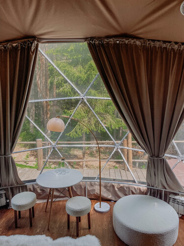 Домики уютные, продуманные, с умопомрачительным видом. Хотелось просто сидеть, молчать и смотреть, как снег медленно опускается на пушистые ёлки. Здесь время будто решило остановиться.