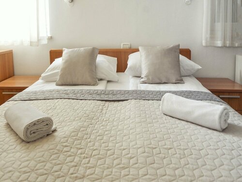 Очень удобное расположение, тихая улочка, 400 метров от моря. Имеется своя парковка. Завтрак на троечку, нет горячего. Номера чистые, персонал очень дружелюбен