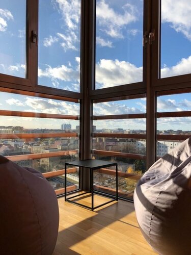 Апартаменты находятся в очень хорошем месте, рядом музей янтаря. Хозяин встретил нас , заселение прошло быстро. Все чистое, есть стиральная машина и посудомойка. На кухне посуда тоже вся, даже чай и сахар не пришлось покупать. Халаты, тапочки, полотенца, фен. Интерьер симпатичный, все как мы любим. В спальне большая кровать, в кухне полноценный двуспальной диван на котором спокойно разместились два подростка (обычно с этим проблема) . Кстати ещё один диванчик есть в прихожей, не знаю, раскладывается ли он. Ну и вечером с балкона открывается красивый вид на город. Конечно эти апартаменты не бюджетный вариант, но они однозначно стоят своих денег. Спасибо владельцам, нам было комфортно как дома