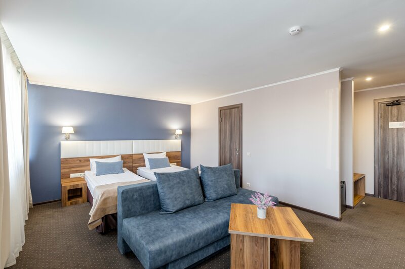 Недорого, номер чистый и просторный, удобная кровать, сантехника старая, но работает исправно, круглосуточная стойка ресепшен. Мыло есть в номере, есть чашки, на этаже есть вода в куллере. Чайника нет, но теплая вода есть в нем же. Нет тапочек, шампуня и зубных принадлежностей. В целом нормально, но есть важные минусы- во-первых фен работает 30 секунд, потом 5 минут отдыхает! За час только смогла высушить голову… кажется, что это мелочь, но когда четкий тайминг- это выбивает, ты же не ожидаешь, что будет неисправная техника. Дорогой, но не вкусный шведский стол, кроме того, что небольшой выбор, так и еда вся жирная от масла, фрукты и овощи очень уставшие. Кроме всего прочего с утра, только открыв глаза за завтраком, вы должны слушать как повар кричит неадекватно на своих подчиненнвх с матом.
