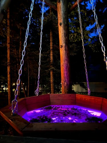 Лучшее место для отдыха в Архызе! Это тот случай, когда ожидание и реальность не совпали в хорошем смысле🔥 Все чистое, в номере халаты, 4 полотенца, гели, мыла, шампуни и много других гигиенических принадлежностей. Территория ухоженная, лес, беседки, гамаки, качели😍 Отличная баня и теплый бассейн, который входит в стоимость брони. Отличный персонал (Аля, Темур и остальные красивые приветливые сотрудники❤️🥰). Встретили нас тепло, сказали сразу бросать вещи и с дороги идти в бассейн и баню, все уже натоплено! Ну как во все и всех не влюбиться?❤️Мы брали стандартный двухместных номер с балконом, в котором все чистое и с красивым ремонтом. Территория подсвечена гирляндами, которые создают атмосферу волшебства. Вечером включают проектор с фильмами и есть лаундж зона, где можно заказать кальян у бассейна. А что еще важно отметить, что перейдя дорогу чуть левее от отеля начинается лес, где можно погулять и за 10 мин дойти до слияния двух рек. Сказать что нам понравилось - это ничего не сказать. Спасибо Вам за такое уютное и райское место в горах. Мы обязательно приедем и не раз!!❤️