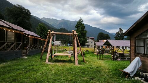 Рядом с отелем — магазины, маршруты к скале и водопаду. Из отеля открывается красивый вид на горы. Во дворе есть мангальная зона с беседками. Гостям предоставляют плитку и посуду для приготовления еды.
