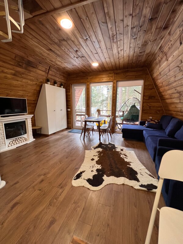 Отдыхали в Елках на рождественские праздники. Остались самые хорошие впечатления, домики идеально чистые, оформлены с большим вкусом и вниманием к деталям. Ощущение будто находишься в собственном домике в горах )) Посуда, полотенца, белье, техника, все что нужно имеется в наличии. В домике очень тепло. У каждого домика собственная мангальная зона с мангалом и беседкой. Посетили и баню с чаном и ледяной купелью, за что отдельное спасибо хозяину Юрию. Баня новенькая, в наличии и масла для парилки, и шапочки, тапочки, чаи как в пакетиках, так и горный сбор. Просто в восторге. Ну и конечно самая изюминка места - прекрасный пес Боб, ласковый, но настойчивый любитель почесух. Это просто чудо 😍 Место однозначно рекомендуем к посещению. Хочется побывать теперь и в летний период. Огромное спасибо Юрию и его семье за радушный прием, удачи и процветания.