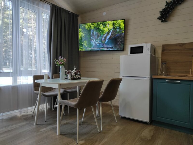 Во вторых, и, наверное, не мало важное, чистота, чистота везде, в номерах, уютно, чисто, комфортно, чисто на территории, всё ухожено, газончики, травка,возле каждого домика свой мангальчик, терраска у всех своя, кстати, есть баня на дровах на территории, с купелью, с видом на речку, видон офигенный 👍