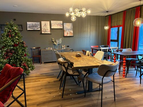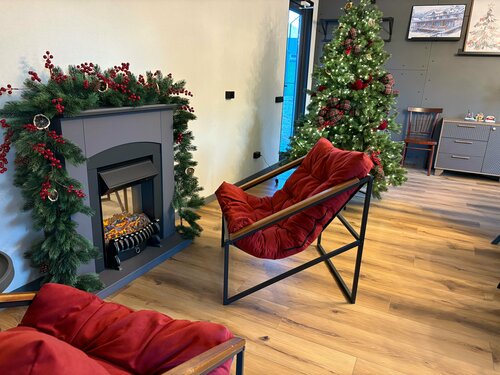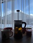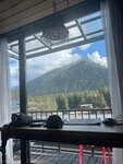 Вид из номера - горы, покрытые елками, со снежными вершинами, внизу- Большой Зеленчук с голубой водой шумит, бежит. На территории - уютная кухня в скандинавсклм стиле с новогодним украшением- и ёлочка, и камин, картины на стенах. Вся бытовая техника в наличии, посуда, фраже, и, конечно же - великолепный вид на горы, Большой Зеленчук. Утром - встреча восхода солнца с чашечкой кофе на смотровой площадке над кухней - золотые и розовые снежные вершины, когда солнце поднимается над горами. Есть площадка для отдыха на свежем воздухе с лежаки, на которых теплые шкуры и пледы, и опять с видом на горы! Качели, танцевальная площадка, запасы дров в ёлочных нишах ииии... тадааам - очаг с кострищем, лежаками, теплыми шкурами и пледами. В сочельник зажгли костёр, сидели, общались и наслаждались Рождественским вечером. Можно там и шашлыки жарить, но мы купили в соседнем кафе с собой. Хозяин Александр 24 часа на связи по любому вопросу, относится к гостям как к самым родным людям!!! Да, для лыжников и сноубордистов - отдельное помещение для снаряжения.