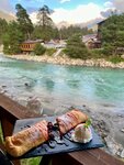 «River & House» предлагает проживание в номерах и домиках. На территории есть бассейн с подогревом, открытый бассейн, мангальная зона, беседки и детская площадка. Предоставляются услуги охраны и видеонаблюдения, есть камера хранения, датчик дыма и огнетушитель. В номерах есть Wi-Fi, электрочайник, холодильник, по запросу предоставляют фен. Есть прачечная со стиральной машиной и гладильными принадлежностями, помещение для сушки снаряжения и хранение лыж. С территории отеля и из номеров открываются виды на горы, реку и сосны. В кафе у реки подают завтраки и блюда на мангале. Есть возможность самостоятельно готовить еду и сидеть на кухне. Рядом находятся магазины, кафе и ферма альпаков.
