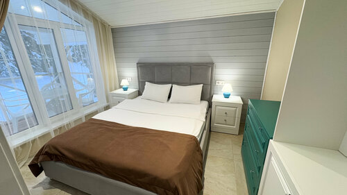 Понравилось шале Пихта, отдыхали с 16-18 сентября 2025г.трое взрослых и двое детей, 9 месяцев и 5 лет, в домике есть всё необходимое для комфортного проживания, тёплый пол, внучка всё время была на полу, чисто и уютно в домике, кухня укомплектована всём необходимым, можно готовить самим, до Романтика и Софийский поляны очень близко. Шале находится в лесу, воздух просто сказочный, спать одно удовольствие, от этого воздуха. Терраса со столиком и стулями, пили вечером чай. Правда территория не огорожена, для детей одна качалка около 3 домика, батут есть на территории, но внучка не захотела на нём прыгать, показался нам хлипким. Рядом есть магазин, но он почему всё время закрыт. А так очень достойное место для отдыха!!!