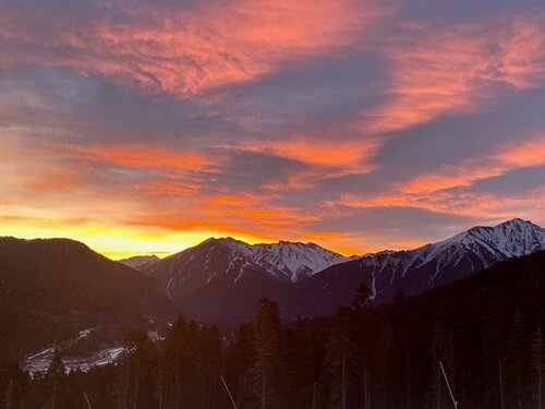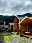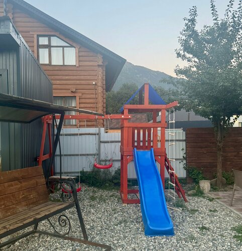 Отдыхали на НГ каникулах 2026. Домик в реальности выглядит абсолютно также, как на фото! Внутри всё необходимое для отдыха: плитка, холодильник, посуда (в тч сковородки и кастрюли), большой телевизор, очень удобный диван. В каждой комнате обогреватели, в доме очень тепло. В туалете большой бойлер, полотенца тапочки и гигиенические принадлежности. Из минусов для меня лично- низкие кровати во второй комнате с пружинными матрасами (( Было приятно получить комплимент от хозяина к НГ - 2 коробки конфет!) порадовало наличие веранды со столиком и плетеными стульями, а также собственная мангальная зона со всеми необходимыми принадлежностями! Парковка на территории есть, также есть отдельный домик для сушки лыжной экипировки, где также установлена общая стиралка и сушка. Домики находятся в стороне от центральной улицы, там тихоооо). До магазинов/кафе/прокатов минут 5 пешком. Из кафешек очень понравились Хижина и Хычинный дворик.
