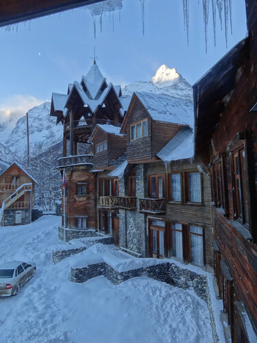 Ездим в Домбай уже не первый год, но впервые в таком замечательном отеле. Доброжелательная администратор Галина, очень приятная и отзывчивая девушка. Хочешь мангал - пожалуйста. Качели - пожалуйста. Паркинг бесплатный под навесом. Очень уютные номера, а главное тёплые. Зубные щетки, полотенца, тапочки и все принадлежности в номере. Холодильник и фен. Сама территория очень уютная, дом красиво подсвечивается. Если говорить про атмосферу уюта, то это про этот отель.