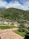 База расположена на самом краю поселка, дальше - только горы. И это прекрасно! Вид - шикарнейший!!! Можно прогуляться по лесу, рядом находится небольшой родник, легко доберется даже ребёнок. Территория базы небольшая, но удобная, есть дорожки из брусчатки, где с удовольствием носится детвора, детская площадка. Мы жили в одноэтажном домике, домик рассчитан на 5 человек, у каждого - полноценное спальное место. Двухспальная кровать очень просторная, можно уместиться даже втроем. В домике душ, санузел со всем необходимым. Есть столик, холодильник, микроволновка, чайник, набор посуды. У каждого домика своя терраса, там столик со стульями, рядом мангал. В общем есть всё необходимое для проживания. Также на территории есть общая кухня, очень чистая, просторная и оснащенная всем необходимым, в т.ч. столиками для совместных посиделок.