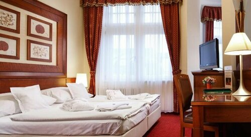 Не плохой отель с бассейном, сауной и лечебными процедурами. Хорошее расположение. Питание не супер, без претензий, на 4. В номере чисто, есть все необходимое - фен, сейф и т. п., постель, полотенца меняют регулярно и по требованию.