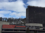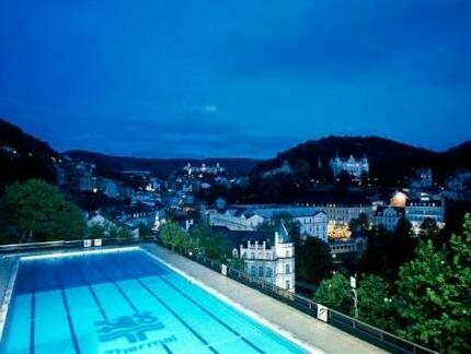 Менее гармонирующего с окружением и более уродливого здания Карловых Вар, чем Thermal, видеть в Чехии не доводилось. Местные жители за размеры политкорректно называют этот мрачный комплекс серых зданий бетонным замком. А по мне сей чудовищный 55-летний монстр – детище архитектора В.Махонина, ради которого снесли множество старинных особняков, школу и сады, – настоящая трагедия. Единственный плюс: с крыши открытого (точнее, закрытого и загаженного) бассейна открываются чудесные виды на центр курорта. И пусть здесь есть казино, конференц-центр, фестивальный зал, где проходят кинофестивали и выставки, останавливаться в этом спа-отеле я бы не захотела, даже если бы получила путевку в санаторий бесплатно. Извините за излишнюю эмоциональность, но просто этот громадный унылый «Термал» так огорчил, так обидно за курорт стало!