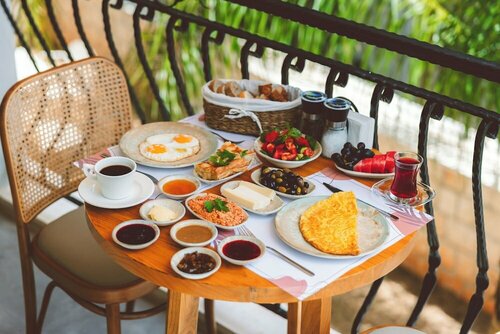 Завтраки приносят порционно, блюда из яиц готовят на ваш выбор, мне всего хватало, очень вкусно.