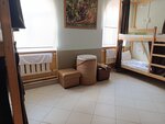 Жила в 8-местной комнате (все было битком, без альтернатив). Заселилась ночью без проблем, но как только вошла в комнату, с ног сбила духота и запах - о вентиляции речи вообще не шло. Из плюсов - шторки, розетка и какая-то держалка на стене койко-места (я туда зубную щетку припарковала). Из минусов - отсутствие шкафчика/сейфа, отсутствие хоть какого-нибудь крючка у кровати, чтобы разместить самое необходимое; койка пыльная и скрипучая, матрас с какими-то комками, а за кроватью (зазор между ней и стеной сантиметров пять) - полный швах: про пыль я молчу, но мелкий мусор и чьи-то грязные носки... было страшно туда что-то уронить.