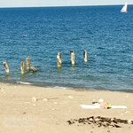 Пляж и вход в море постепенно, вода чистая, ничего не плавало, раздевалки и душ требуют ремонта. Песок насыпной, но без тапок кораллок-тяжко. Большие камни на входе.
