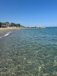 Пляж.Отличный.По началу было тяжело босиком, но потом привыкли, дети тоже.Чисто, вода чистая, голубая)))