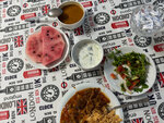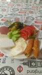 Еда во время обеда, ужина -порционно, никакой раздачи в виде шведского стола и тп. На фото ест примерный набор блюд.