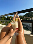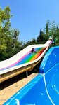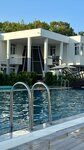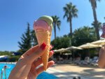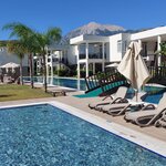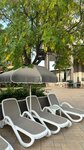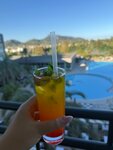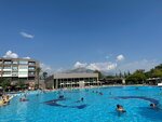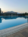 Пляж… тут странность, пляжа два и расстояние между ними достаточное, ну на обоих лежаки и полотенца все входит в стоимость, на пляже еда разная, мороженое, соки, воды, пиво, фрукты и бургеры и фот и орешки смесь. Заход галька и мелкая галька, берите аквашузы. В целом мне все понравилось , и поселок тоже понравился. Нужна реновация в номерах и будет прям счастье для посетителей. На территории есть еще аллея из пальм, выглядит супер! Рядом есть и магазины и парикмахерские и все что нужно. Виды из окон на горы вообще супер, но и внутренний двор с бассейном очень зелен и полон деревьев и цветов