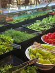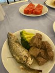 Еда в целом норм, мясо , рыба красная, десерты интересные, ну и стандартные европейские пирожные и целые торты , восточные сладости конечно, фрукты : дыня, яблоки, груши, бананы, мандарины (восторг). Из сладостей очень порадовали: свежайший и нежнейший лукум, фаршированные орехами инжир и курага (отлично). Картошка фри и по деревенски реально удачно делают. Огромный выбор сыров и молочных продуктов и десертов национальных, оливки разные - вкусные большие, шашлычки разных видов тоже оч достойные, колбаса конечно провал и благо ее совсем немного, выпечка утром оч вкусная, мороженое ешь сколько хочешь 5 вкусов на выбор, отличное мороженое без претензий. Персонал очень доброжелательный, но мало кто нормально понимает русский … много не цев, есть и поляки и латвийцы. Никто никому не мешает, все улыбаются и желают приятного аппетита. Вот если бы занялись реновацией была прям пятерка отличная.