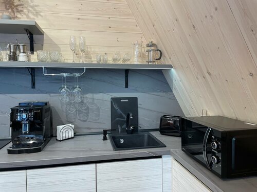 В жильё имеется всё необходимое для комфортного проживания: посуда, чайник, микроволновая печь, посудомоечная машина, плита, кофеварка, холодильник.