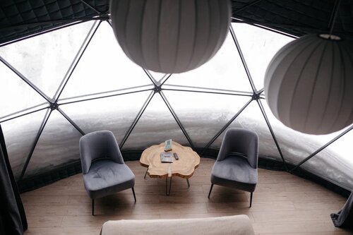 Ещё меня напрягал постоянно говорящий и играющий одну и ту же мелодию подъёмник. У нас с Шерегешем разница во времени минус 4 часа и в первые дни утром очень хотелось поспать. У меня чуткий сон и я постоянно просыпалась от звуков подъёмника. Было бы здорово, если бы отключили динамики, которые расположены около домиков.