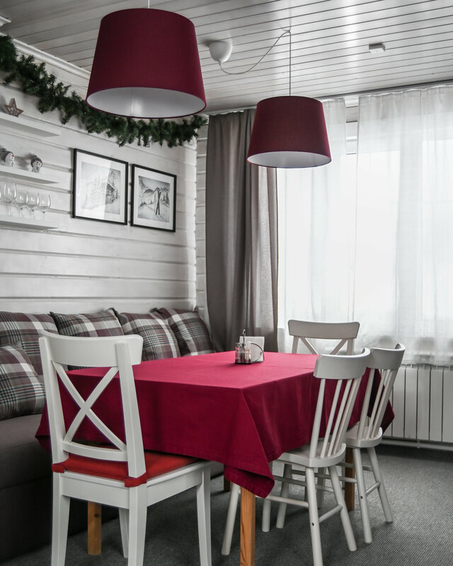 Были в гостях в феврале 2024 года в отдельном доме. В доме 3 комнаты (гостиная и 2 спальни), комфортно могут разместиться 4 - 6 человек. В гостиной кухонный уголок, в прхожей место для хранения лыж, сушилка для обуви. Уютный домик, все красиво, продуманно, удобно, тихо. Трансфер на подемник. Очень понравилось, выбрал бы ещё раз.
