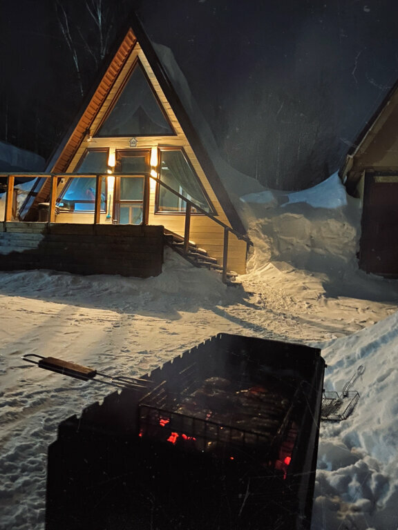 Территория жилья ухоженная, с вешалками для снаряжения и мангалом. Рядом — магазин и первый подъёмник. С территории открываются виды на горы.