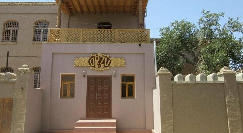 Гест-хаус Orzu находится в Старом городе Хивы, внутри крепостной стены. Это очень атмосферно - жить среди исторических памятников, где до любой достопримечательности - два шага. В то же время отель расположен на спокойной улочке, где всегда тихо и безопасно. Огромный плюс отеля - уютный дворик с живой черепашкой, где можно посидеть и отдохнуть от жары. А также просторная терраса со столиком, на которой можно покурить или выпить кофе с видом на историческую стену. По стене изредка проходят туристы, купившие специальный билет, и с завистью смотрят на вас, релаксирующих на террасе с прохладительными напитками))) В самом гест-хаусе царит идеальная чистота, потому что уличную обувь гости снимают в прихожей на первом этаже и по отелю перемещаются по коврам в носках или в тапочках. Также проводится регулярные уборки. Хозяин Шакир и его семья - очень гостеприимные люди, которые заботятся, чтобы их гостям было комфортно. Мы приехали в Хиву рано утром. Хотя у нас было заселение в 14:00, нас бесплатно заселили в номер в 8:00 утра. Так хозяева делают всегда при возможности, если номер не занят. Естественно, если номер занят, вас заселят в указанное в бронировании время, так как номер нужно ещё убрать. Поэтому совершенно непонятны претензии некоторых путешественников в отзывах, почему их не заселили сразу по приезду. Завтраки в Orzu шикарные: всё свежее и очень качественное, большой выбор сладостей и фруктов, вкусные сыр и колбаса, а также волшебные лепёшки. Номера просторные, в жару спасает кондиционер, как только на улице холодает (в наш приезд это произошло очень резко) - хозяева включаю батареи. Напор в душе бывает разный, это так по всей Хиве, у нас он был в основном отличный. У нас остались только положительные эмоции от пребывания в Orzu. Особенно благодарны Шакиру за наш отъезд в 2:30 ночи в аэропорт. Он заранее нашёл нам машину с хорошим водителем за адекватную цену и лично проводил нас.