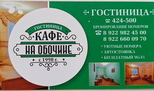 В «На обочине» заселение после 14:00, выезд — до 12:00. В номерах есть сплит-система, телевизор, холодильник. Предоставляется бесплатный беспроводной интернет. Есть парковка и шиномонтаж. Возможно проживание с животными. Созданы условия для людей на инвалидных колясках. Оплатить проживание можно наличными или картой. В 30 метрах от гостиницы — столовая с разнообразным меню, она работает круглосуточно. В кафе можно провести корпоративное мероприятие, свадьбу или банкет.