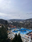 На территории есть термальная зона с финской сауной, русской баней, инфракрасной сауной и кедровой бочкой.