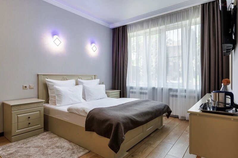 Жильё «Берёза» предлагает комфортные комнаты с удобными кроватями и ортопедическими матрасами. В комнатах есть смарт-ТВ, кондиционер, Wi-Fi, холодильник, сейф и всё необходимое для личного ухода.