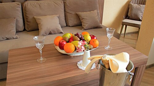 4 минус - номер. В номере на стенах висят просто рамы для картин.. это современное искусство или надо самим рисовать? 😁 Шампанского, которое есть на фото номера, конечно, в номере нет. При заезде после обеда в номер принесли фрукты, было приятно.