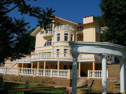 В отеле очень тихо. Автомобилей немного, и дорога закрыта от отеля высокой оградой. На территории есть беседка, красивые перила.