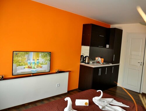 Здесь созданы все условия для комфортного проживания — есть холодильник, телевизор, фен, утюг, чай/кофе в номерах, микроволновая печь.