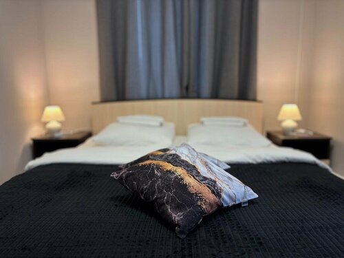 Обеспечена безопасность: работает охрана, ведётся видеонаблюдение, датчик дыма и огнетушитель. Для ухода за одеждой доступны гладильные принадлежности, прачечная, стиральная машина и сушилка.