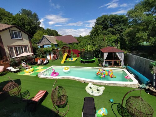 Место прекрасное, лично мне напомнило Черногорию по природе. Воздух горный и морской одновременно, что вдвойне полезно. Отличный бассейн, зона барбекю, русская баня… Отличное место для отдыха взрослым и детям!
