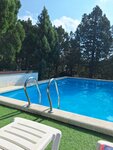 Бассейн просторный, чистый, у него крытая веранда для посиделок и лежаки.