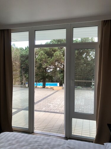 Оазис уюта и спокойствия! Можжевеловый рай! Прибыв в "Алион" после долгой и утомительной дороги, намеревалась зайти в номер и отдохнуть. Через пять минут знакомства с территорией, утопающей в можжевеловой рощице,силы полностью восстановились! Очень красивая территория у отеля, и все оборудовано для удобства отдыхающих. Управляющая Ольга, горничные Анжела и Валентина с большой любовью относятся к своему "детищу", доброжелательны, на связи в любой момент. Открытая кухня - столовая среди деревьев, где очень удобно готовить, зона плит отделена от столиков перегородкой, украшенной срезами можжевельника. Для каждого номера - свой отдел для продуктов. Холодильник - и в номере, и на кухне. Огромный выбор посуды, красивой, разнообразной. Я обожаю готовить на отдыхе и сервировать! Попробовала знаменитую барабульку, привезла с центра, с кафе, чтобы насладиться вкусом именно на любимой кухне!