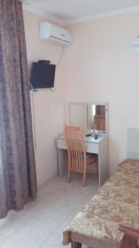 Были большой компанией, сняли 6 номеров. Отношение хорошее, есть парковка, есть общественная кухня, уличные беседки, шашлычная зона. В номере туалет, балкон, спальня, телевизор, холодильник. Ценник начальный, завтрак не входит. Рядом остановка общественного транспорта, все нужные магазины в шаговой доступности, в том числе круглосуточные. Кто приехал чисто на пляж и надо переночевать - вам подойдёт! Покушать можно в десятке заведений рядом! До пляжа 18 минут на машине. В общем нормальное заселение!