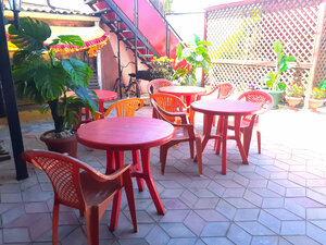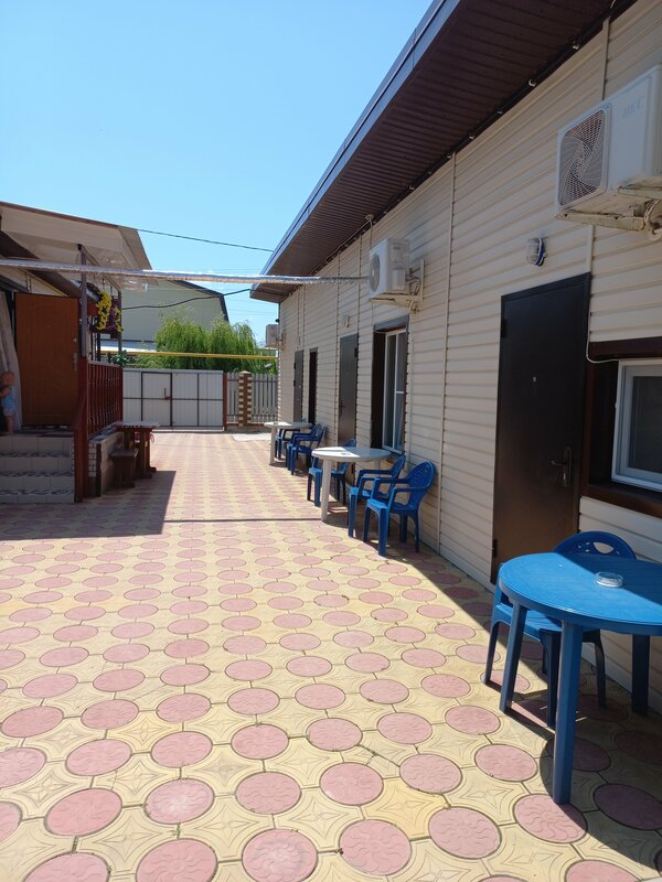 Гостевой дом «Добрый хозяин» предлагает комфортные номера с кондиционером, Wi-Fi, телевизором, холодильником и москитной сеткой. Есть общая кухня с посудой, чайником, микроволновой печью и плитой. Предоставляется бесплатная парковка для автопутешественников. На территории есть площадка для барбекю с инвентарём и детская площадка с кроватками, колясками, игрушками, велосипедами и самокатами. Двор закрыт и безопасен. Можно проживать с домашними животными (услуга может быть платной). Заезд после 14:00, выезд до 12:00. Рядом магазины, столовые, парк развлечений, рынок и море.