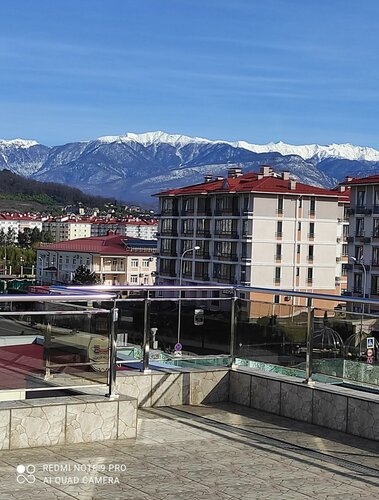 Теперь про отель. Он просто чудесный для своих 2х звёзд. Небольшая, но очень зелёная и ухоженная территория. В фойе гостиницы всегда работает кондиционер, можно отдохнуть на диванчиках, выпить кофе. Кофе аппарат здесь же, по очень демократичным ценам. Можно сделать вкусные горячие напитки (эспрессо, капучино, американо, раф, горячий шоколад и пр.). Капучино объемом 250 мл стоит 89 руб., объемом 350 мл -101 руб. Сам Отель очень чистый и уютный. Мы жили на 3 этаже. Вид с балкона на стадион Фишт (вечером его крыша красиво переливается разными цветами) и на Сочи Парк (видно 2 аттракциона). Уборка номеров ежедневная, белое постельное белье и полотенца. Полотенца меняют раз в 3 дня, постель раз в 5 дней. Отдельное спасибо за удобные матрасы на кроватях, спать очень комфортно. В номере, как уже писали, нет шампуня и геля для душа, но для нас это не было проблемой, т.к. мы за привычные нам косметические средства, у каждого свои предпочтения.