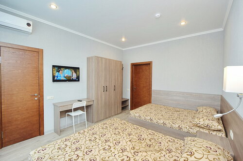 Гостевой дом «Гелиос» предлагает номера с современной отделкой. В номерах есть сплит-системы, холодильники, телевизоры, сейфы, полотенца, фен, душ и туалет. На территории гостевого дома есть бесплатный Wi-Fi, детская игровая площадка, две кухни для самостоятельного приготовления пищи, прачечная, благоустроенный внутренний двор с беседками и мангальной зоной. Работает круглосуточная стойка регистрации, предоставляется услуга трансфера.