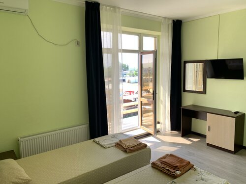 Хочу сказать большое спасибо хозяйке и девочкам, которые работают тут! Если Вы ищете жилье у моря за человеческие деньги, Вам сюда! У нас был номер на 3м этаже с балконом, комната большая, была кухня и с/у, кровать большая, удобные матрасы, плюс доп место, куча шкафов и тумб, и вайфай и телек, все чисто и аккуратно! В 4х минутах от пляжа! Тут же свое кафе, где можно покушать! В общем нам очень понравилось!