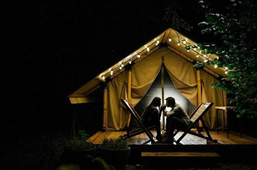 Выбирали с мужем,где провести майские праздники, выбор пал на это место. На сайте глэмпинга все красиво, 6га леса, ферма, агротуризм, интернета нет, после 10 вечера режим тишины.