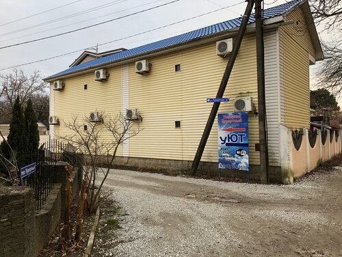 Гостевой дом «Уют» предлагает комфортное проживание. На территории есть бассейн под открытым небом и детский бассейн, сауна, бесплатная парковка, общая кухня с необходимой посудой и техникой. Предоставляется Wi-Fi. Есть гладильные принадлежности, детская игровая площадка, стульчики для кормления. Можно воспользоваться мангалом, насладиться прогулками по саду, устроить пикник. В номерах — кровати, тумбочки, телевизор, санузел, душ, кондиционер, холодильник. До моря можно дойти по тенистой аллее, рядом — магазины. Размещение с животными возможно по согласованию с администрацией.