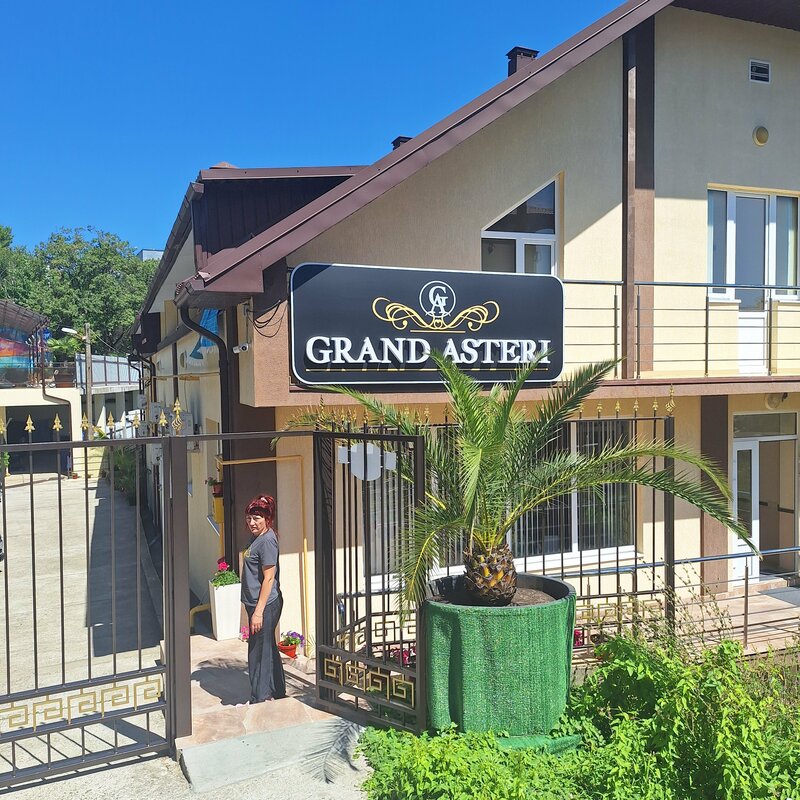 В жильё «Гранд-Астери» есть бассейн с подогревом, детская площадка, мангал, зона для отдыха, сейф, охраняемая стоянка, Wi-Fi. Предоставляется услуга трансфера (за дополнительную плату). Для курящих отведены специальные веранды и место во дворе. Тихие часы — с 22:00 до 08:00.