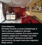 Жильё «Гранд Вавилон» находится в центре посёлка, в 10–15 минутах ходьбы от моря. В комнатах есть санузел, душ, холодильник, фен, плазменный телевизор, Wi-Fi, кондиционер, чайник. На 2 и 3 этажах — балконы, на 1 этаже — выход на террасу. Есть взрослый и детский бассейны, зона отдыха во дворе, стиральная машина, бесплатные парковочные места. Для детей предусмотрены батут и площадка, по субботам проводятся детские шоу. Можно взять в прокат велосипеды. Есть массажный стол.