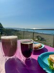 В кафе вкусные блинчики и супер вид с балкона. Еду покупали в магазинах в Джубге, ездили на своей машине. Для приготовления брали с собой сковороду и газовую походную плиту.