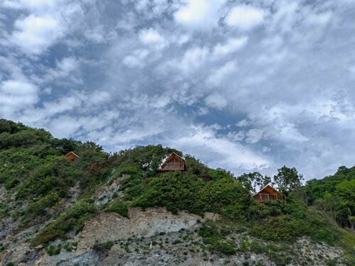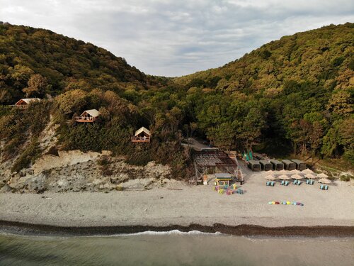 В сильный дождь берег затапливает. Все эко домики на берегу в воде и к морю в течение дня не пройти. С палаткам в лесу всё нормально было. С бомбическими палатками на горе с видом на море не очень.